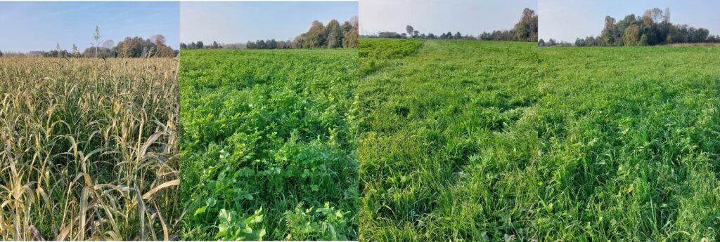 Le quattro diverse cover crop installate in una delle aziende che fanno parte del LL nell’estate del 2024.