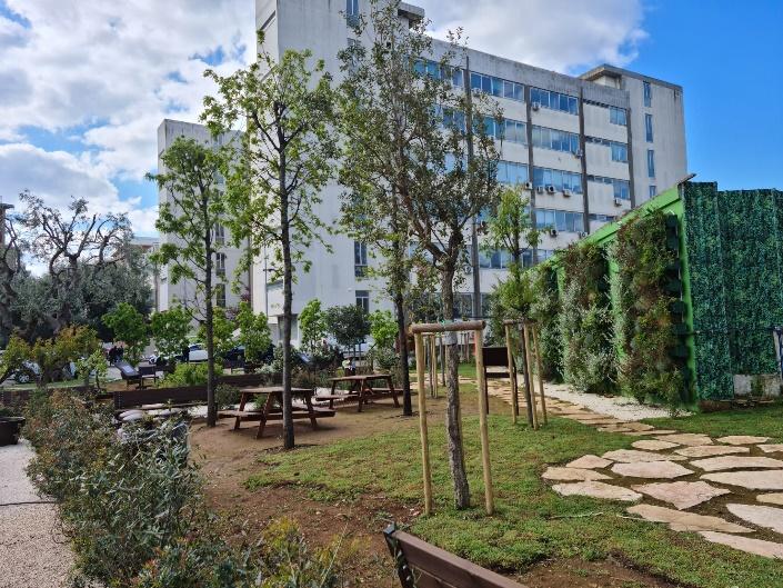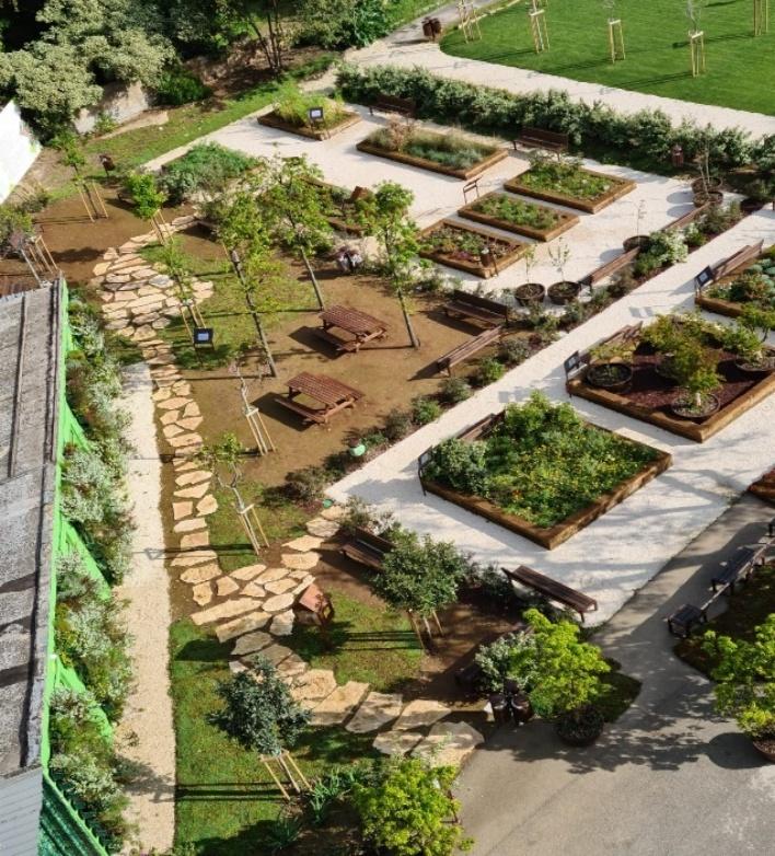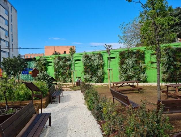 • Progettazione e installazione di infrastrutture verdi (micro-irrigazione, letti rialzati, pareti verdi, vegetazione diversificata).