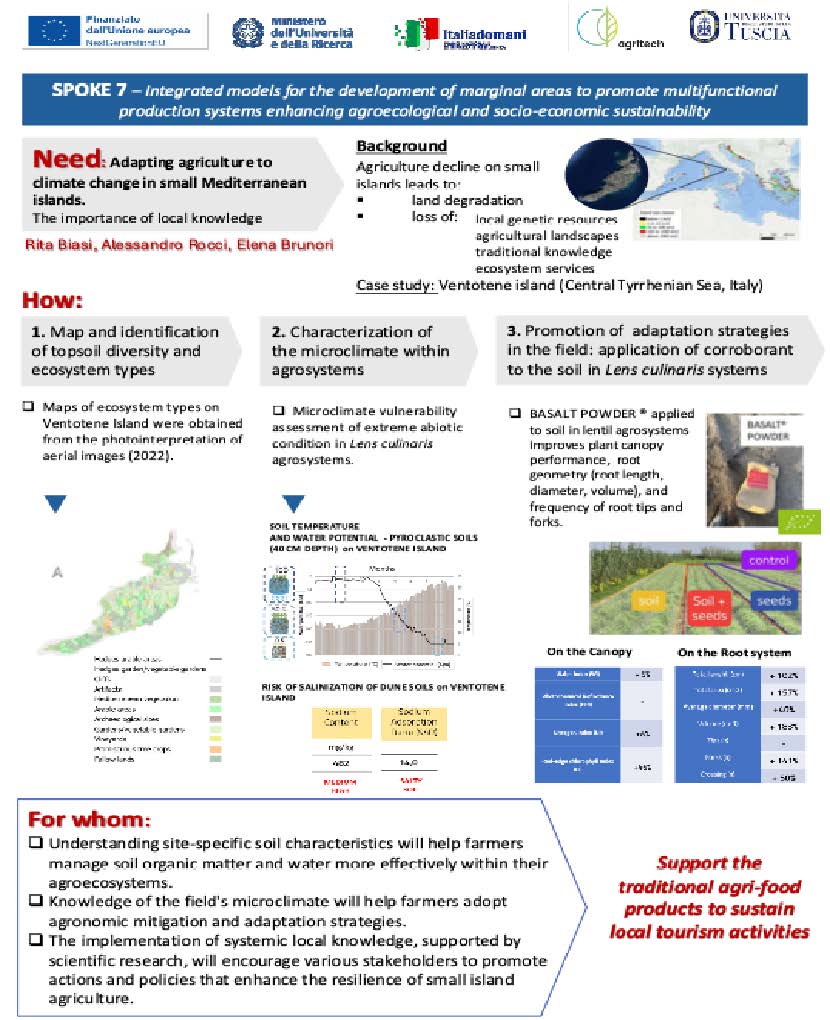 • Migliorare la salute del suolo e la resilienza agricola su piccole isole mediterranee.